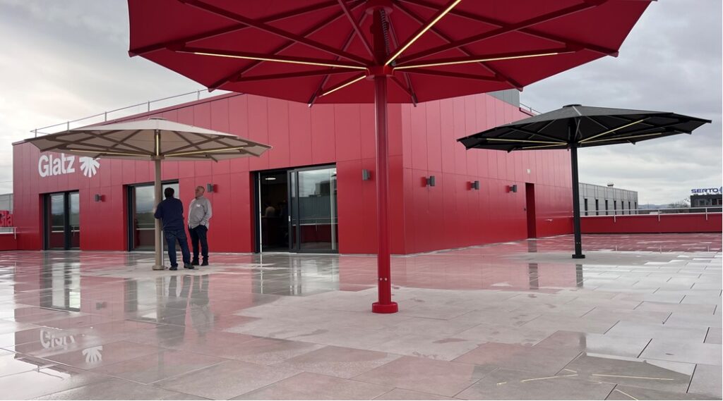 Nos modèles comme le Prostor P6 ou le Glatz Fortello, disposent de gouttières de jonction qui dirigent l’eau vers l’extérieur du parasol. Résultat : aucune infiltration entre les toiles et une terrasse utilisable même en cas d’averses. Ce système, discret et ingénieux, assure le confort de vos clients tout en prolongeant la durée de vie de la toile.