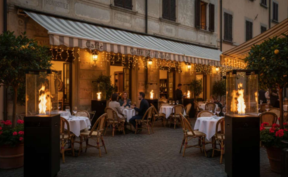 Le chauffage extérieur professionnel KAREO est conçu pour les terrasses de cafés, hôtels, bars et restaurants qui veulent offrir un confort thermique optimal à leurs clients. Grâce à une flamme alimentée au gaz dirigée sur des pierres de lave, KAREO diffuse une chaleur rayonnante douce et enveloppante. Il s’intègre parfaitement dans un aménagement extérieur professionnel, offrant une ambiance haut de gamme et une exploitation terrasse étendue, même quand la météo ne joue pas.