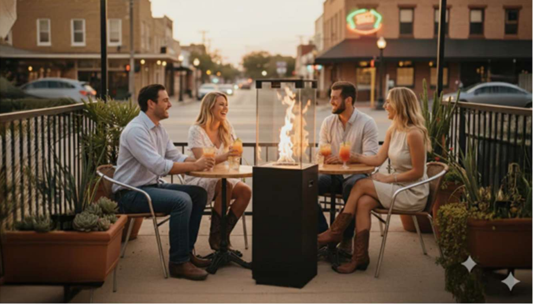 Grâce au chauffage extérieur KAREO, votre terrasse reste accueillante lors des soirées fraîches et en mi-saison. Sa flamme chaleureuse associée aux pierres de lave crée une ambiance élégante et confortable. Ainsi, vos clients profitent d’un vrai moment de détente, même quand les températures baissent.