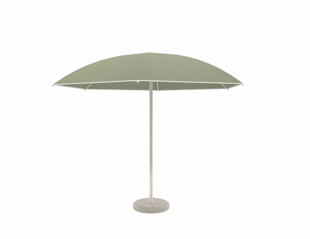 Nostalgic Plu | Parasol rond Ø 2,8 m, structure beige limestone, toile vert amande avec bordure contrastée en canvas. Élégant et raffiné. |